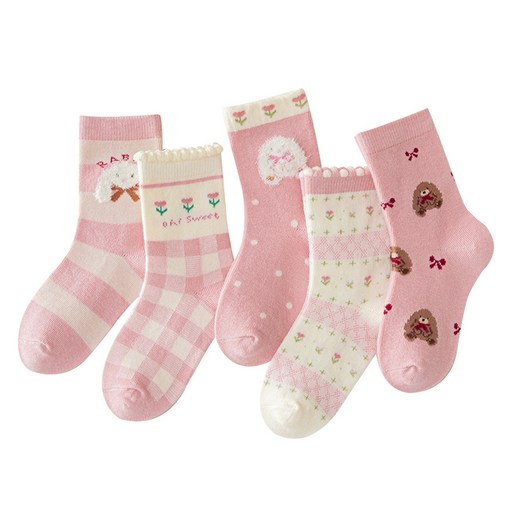 아이뿜 여아용 리본 토끼 양말 5종 세트 F137